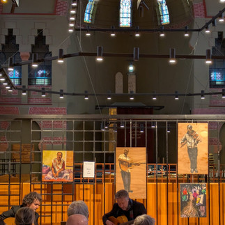 Pascal Binneweg en Ronald Kamphuis verzorgden als duo Gyspy Groovin een muzikale bijdrage passend bij deze herdenkingsbijeenkomst. Ze brachten een combinatie van flamenco en swing ten gehore, geĆÆnspireerd op werk van verschillende bekende Roma en Sinti artiesten. Kunstenaar Ron Glasbeek toonde vanwege deze bijeenkomst een serie kunstwerken, te zien achter de sprekers.